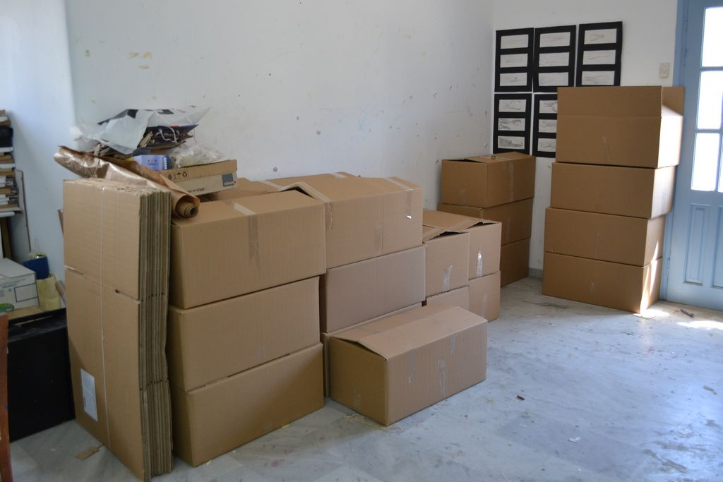 - Η κατάσταση του κοινοτικού αρχείου Αγκαιριάς πριν την καταγραφή του και την τοποθέτηση του υλικού σε κούτες. Καλλιτεχνικό εργαστήρι του δήμου, Παροικιά Πάρος